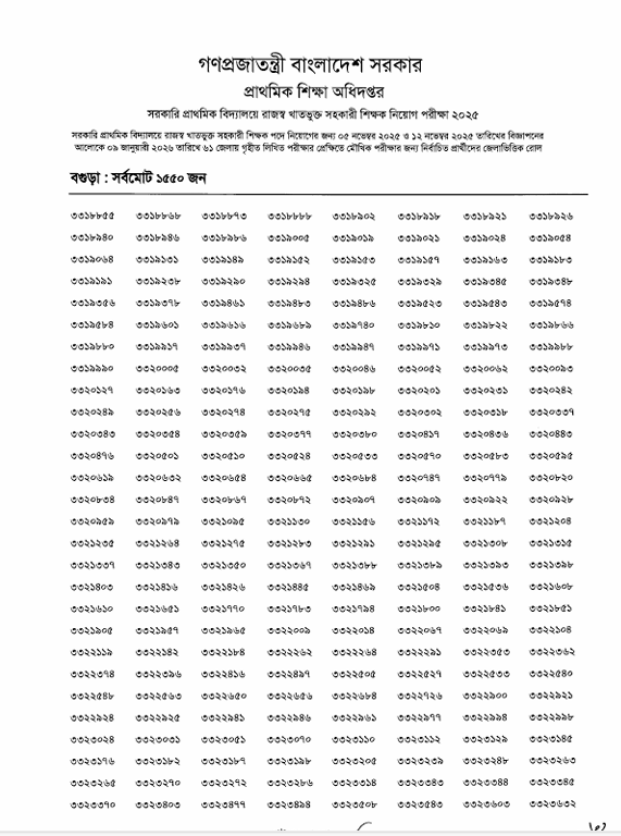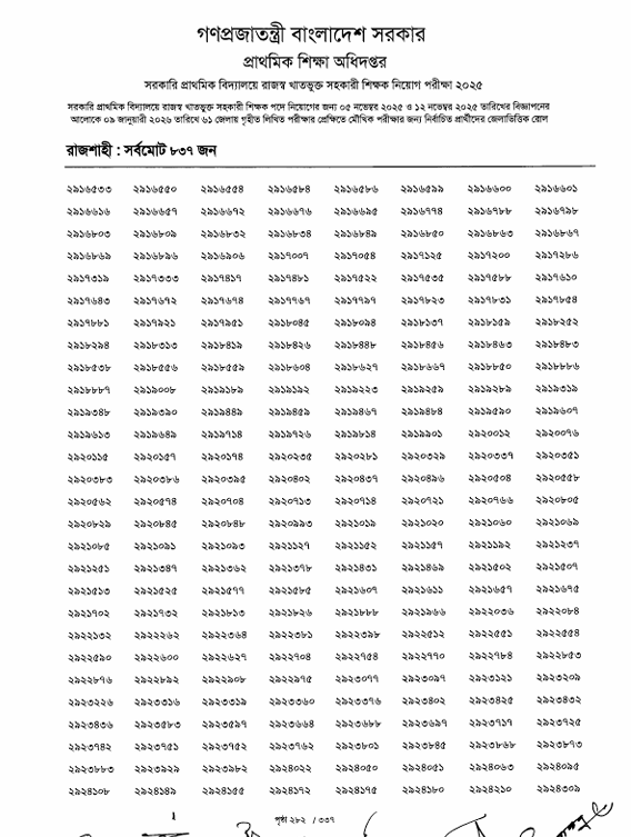 The roll number and list of candidates selected for the written examination oral examination conducted by Rajshahi Division on 9 January 2026 in the light of the advertisement on 5 November 2025 for the post of Assistant Primary School Assistant Teacher. The results of the written examination result of Rajshahi Division Assistant Teacher Recruitment 2025 are the results of the recruitment examination for Primary Assistant Teacher Recruitment. The results of the examination are published today, January 21, 2026, every Sunday at 2 pm. The results have been published today by the Directorate of Primary Education. The results have been officially published at 2 pm under the chairmanship of Sohel Ahmed, Director General of the said Directorate.