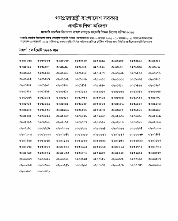 Assistant Teacher Recruitment Exam Result Naogaon District
