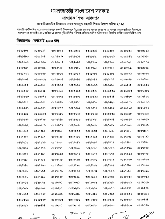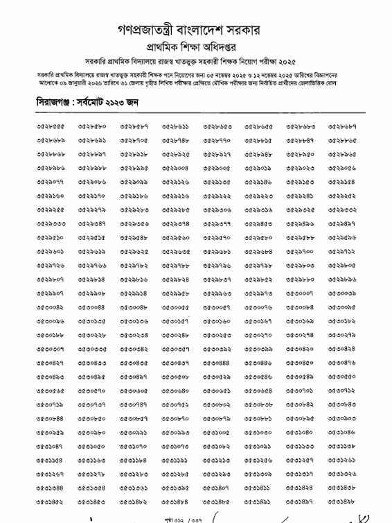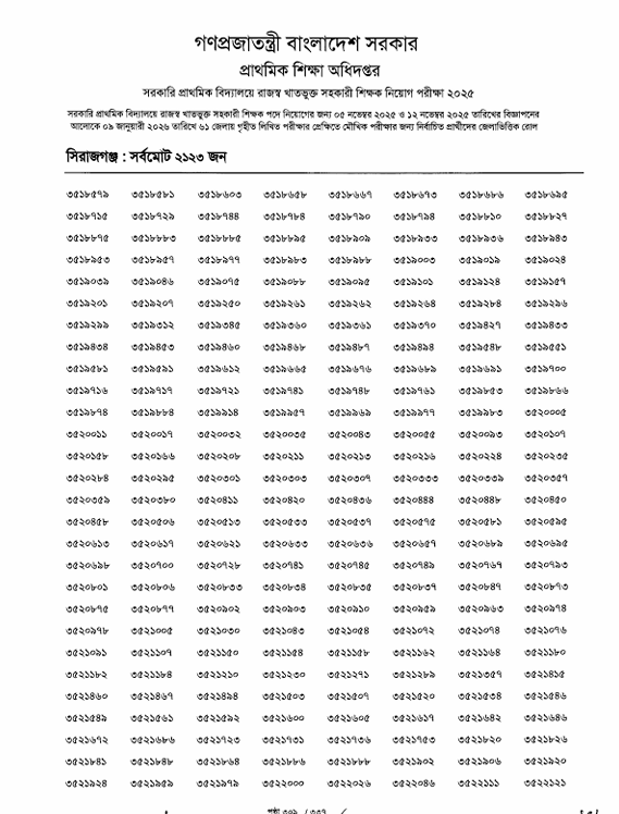 Assistant Teacher Recruitment Exam Result Sirajganj District